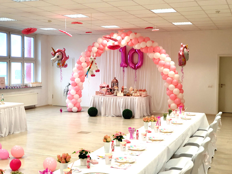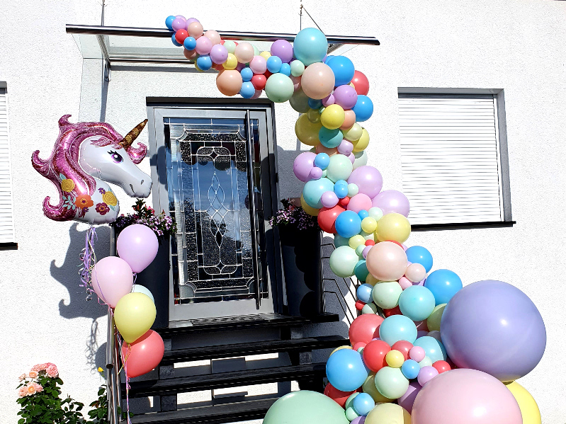 Bei jeder Festlichkeit bieten Ballons eine inidivuelle Gestaltungsmöglichkeit. Mit luftgefüllten Ballongirlanden lassen sich ebenso Traumwelten gestalten wir mit heliumgefüllten Ballonarrangements. Die passenden Ballons bieten ein perfekten Rahmen für Taufen, Konfirmation und Kommunion und jegliche Motto-Party.