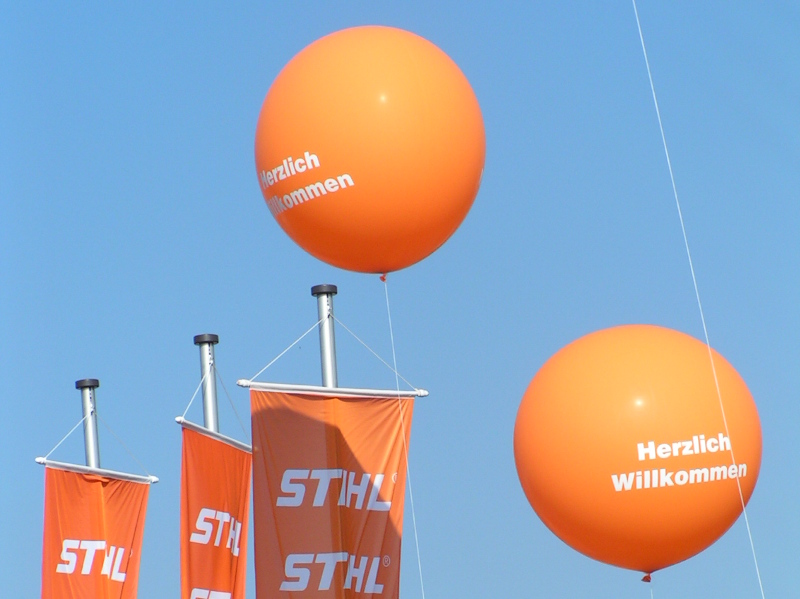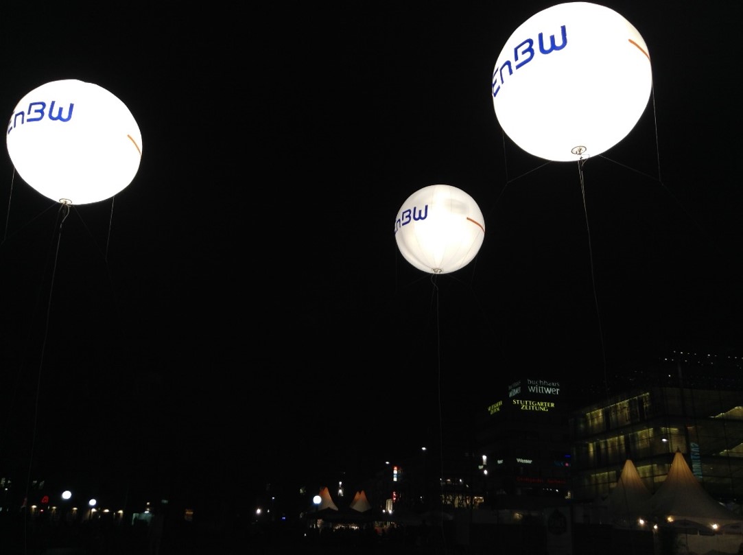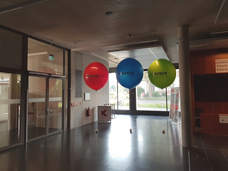 Riesenballons mit einem Durchmesser ab 60 cm bis über zwei Meter werden von ab einer Menge von 5 Stück bedruckt. Zur Gestaltung senden Sie uns eine vektorisierte .eps Datei.
